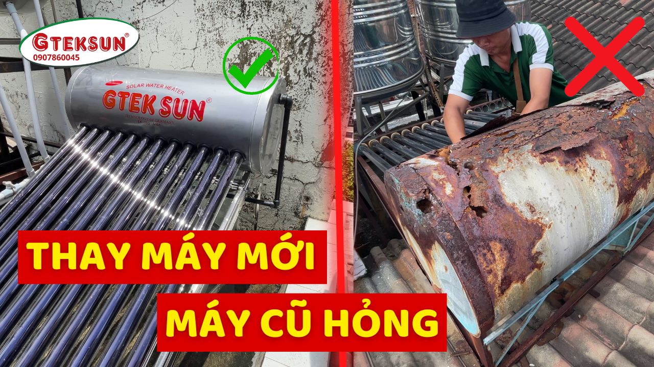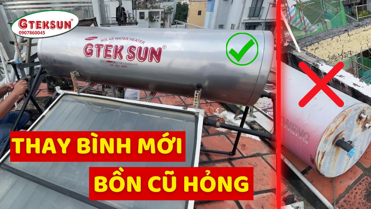 Thay Máy Nước Nóng Năng Lượng Mặt Trời Bị Hỏng Bằng Máy Mới Gteksun Nano Chống Phèn 190 lít